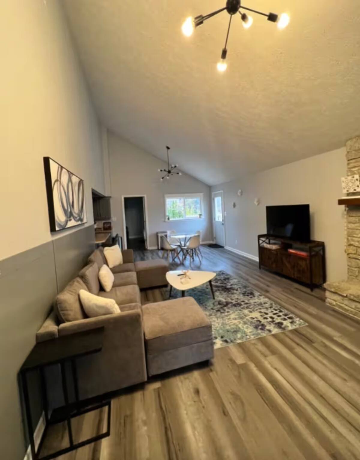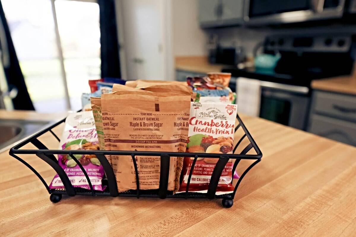 Our property is perfectly located for easy access to a number of great shops and restaurants. Here are some details for your reference: Kitchen - It has a coffee pot with tea/coffee that we provide complimentary! Also, there are free oatmeal and snacks provided. There are also pots, pans, basic spices and bakeware. Living Room - A smart TV with access to the standard streaming platforms. Fireplace is just for show and is not to be used. There are also games provided for some offline entertainment. The sofa can also be configured as a full-size bed. Bedrooms - Please see the breakdown of the bedrooms below: Bedroom 1 (Primary) - A large and comfortable king bed is the star and there is an ensuite bathroom. Bedroom 2 & 3 - Both have queen beds as well as a dual purpose alarm clock that can also charge your phone, just ensure your remove your phone case when you place it on top of the alarm clock. Outdoor Deck - A firepit table is set up on the deck as well as a grill and both are propane powered. Its the best place to get your grill on and enjoy some summer sun. Parking - The garage can comfortably fit two cars and the driveway can fit a couple more.