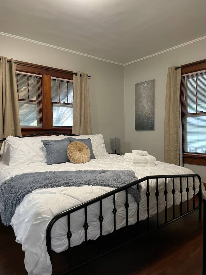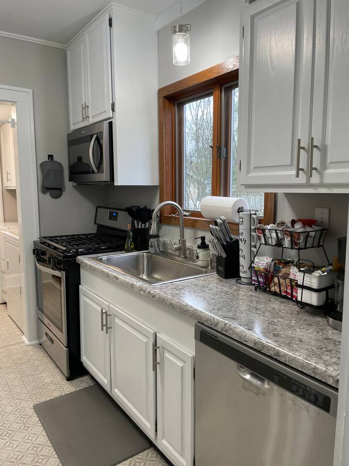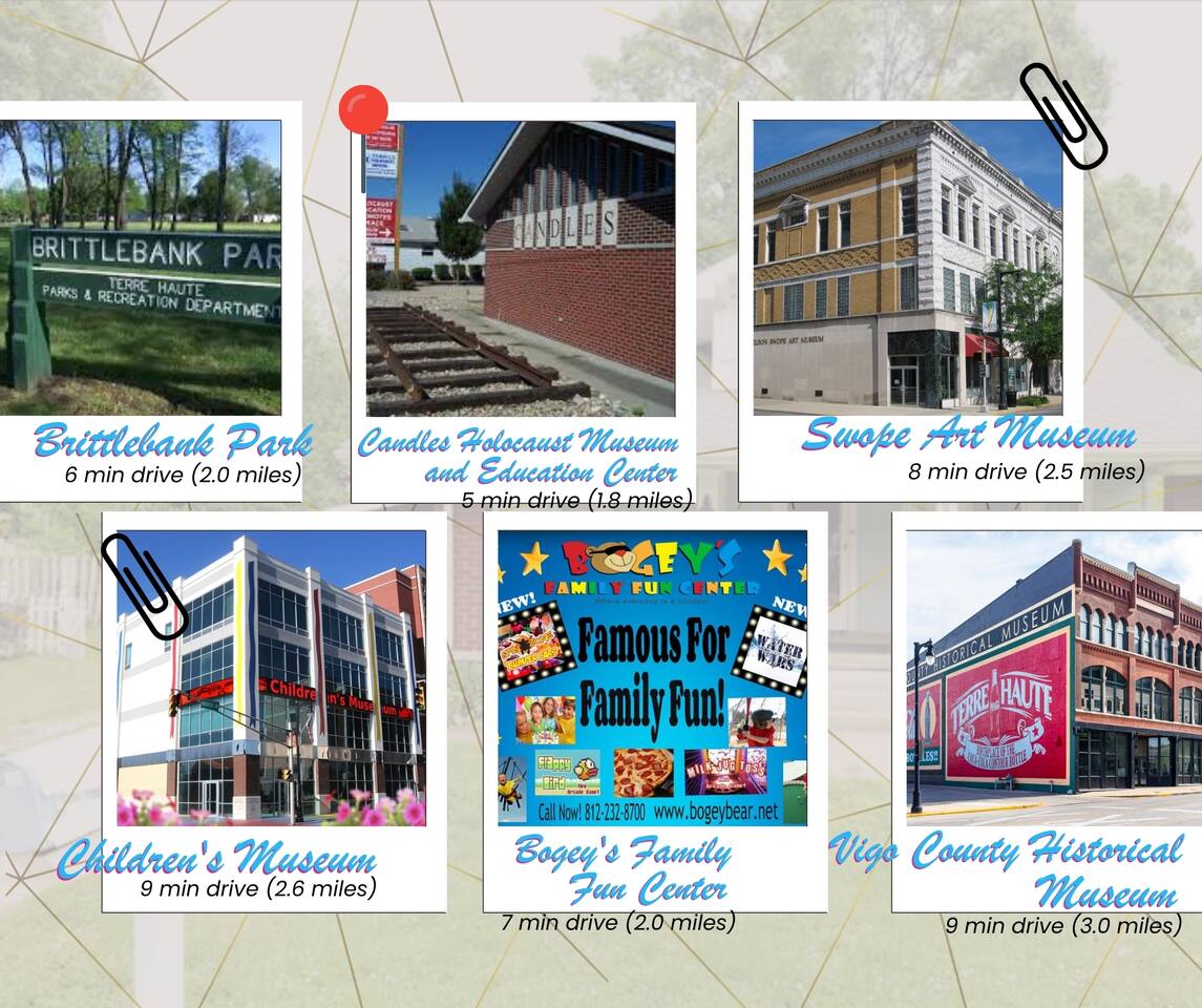 ✔ Beautifully updated home with 2 bedrooms and 1.5 baths! ✔ Luxurious king-size bed in master bedroom with additional queen room and queen pull-out sofa ✔ Private screened-in porch, Large Deck & yard with Game Table, Fire pit table, and grill! ✔ Minutes to I70 and US 41 ✔ Perfect for Longer Stays & Flexcation ✔ High Speed WiFi 500+ MBPS ✔ Fully Stocked/Equipped Kitchen ✔ Smart TVs in the living room & master bedroom ✔ Detached garage and carport available Primary bedroom~ King size bed and attached full bathroom. Smart TV. ~~~ 2nd bedroom~ Queen size bed and attached 1/2 bathroom. Packnplay can be found in the closet. Each bedroom has alarm clocks that double as a phone charger by simply placing your phone on the top (without a phone case). ~~~ The living room and primary bedroom have smart televisions, allowing you to conveniently login to any of your streaming platforms. There are also complimentary games available for your enjoyment. The couch is a queen size pull out sofa bed for additional sleeping needs. Please note, both bathrooms in the home are located inside of the two bedrooms. ~~~ Kitchen is fully stocked with pots, pans, and bakeware. Basic spices and cooking spray. Coffee pot with complimentary coffee and tea. Complimentary oatmeal and snacks. Toaster. ~~~ Deck has a firepit table and grill, both use propane tanks. The screened in porch has a game table, as well as yard games. ~~~ Detached 2-car garage is available for your use, as well as the carport and driveway. The remote for the garage can be found in the cabinet in the laundry room. Please ensure the remote is returned prior to your departure. ~~~ Any pet above 50lbs needs special approval from the host. Nearby Restaurants and Attractions Restaurants Loose Goose Coffee Company 2 min drive (0.3 mile) Royal Mandarin 2 min drive (0.4 mile) Cracker Barrel Old Country Store 3 min Drive (0.7 mile) Sunrise Family Restaurant 2 min drive (0.6 mile) Tokyo Japanese Cuisine Hibachi Grill 2 min drive (0.6 mile) Fazoli's 3 min drive (0.7 mile) New Day Cafe 3 min drive (0.8 mile) ATTRACTIONS Terre Haute Children's Museum 9 min drive (2.6 miles) Candles Holocaust Museum and Education Center 5 min drive (1.8 miles) The Bouncin Barn 4 min drive (1.2 miles) Swope Art Museum 8 min drive (2.5 miles) Brittlebank Park 6 min drive (2.0 miles) Bogey's Family Fun Center 7 min drive (2.0 miles) Vigo County Historical Museum 9 min drive (3.0 miles)