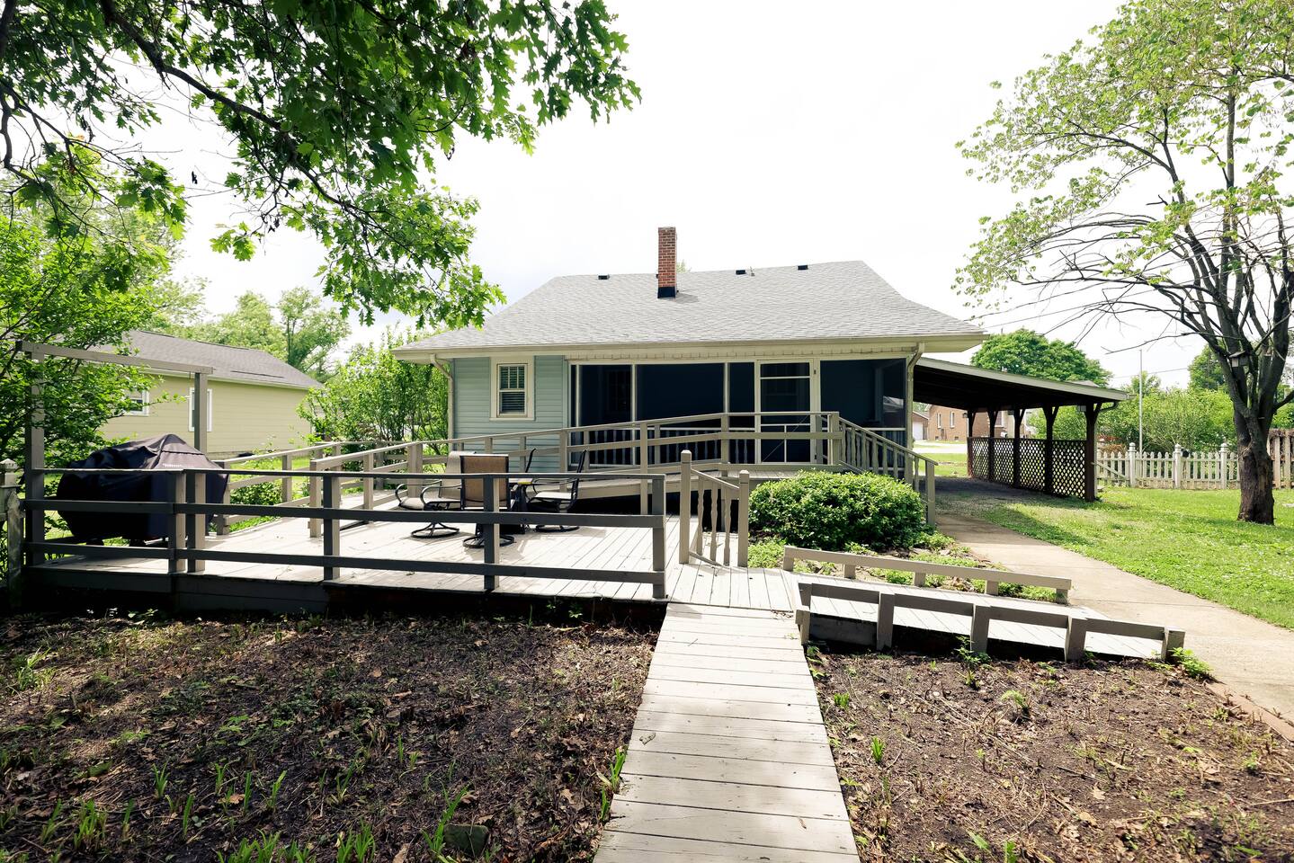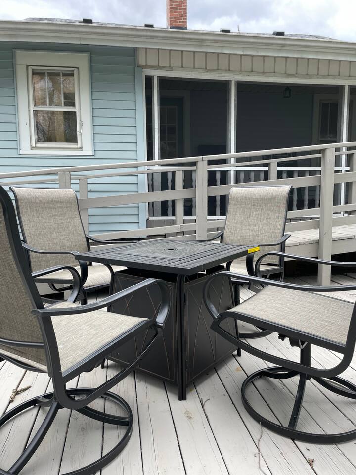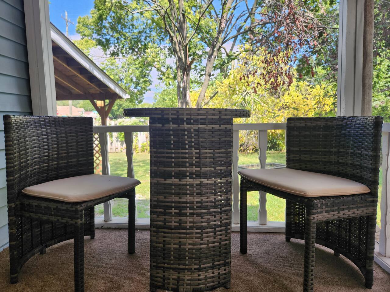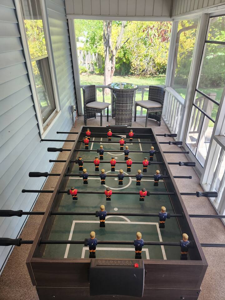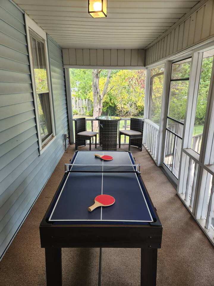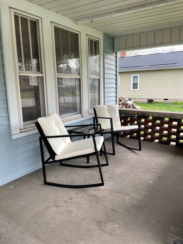 Relax in our beautifully updated 2-bedroom, 1.5-bath home with a luxurious king bed, cozy queen room, and queen pull-out sofa. Enjoy morning coffee on the private screened-in porch with a game table, or unwind on the large deck wheelchair accessible, fire pit table, and grill. Perfect for Longer stays or flexcations, with high-speed WiFi, a fully stocked kitchen, and smart TVs. Minutes from I70 and US 41, with a detached garage and carport for your convenience.